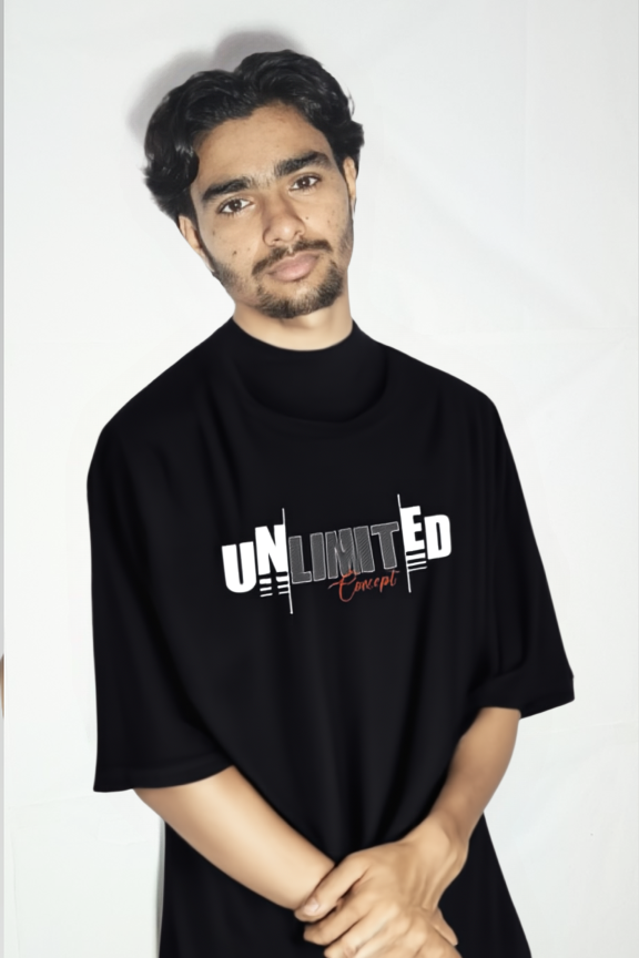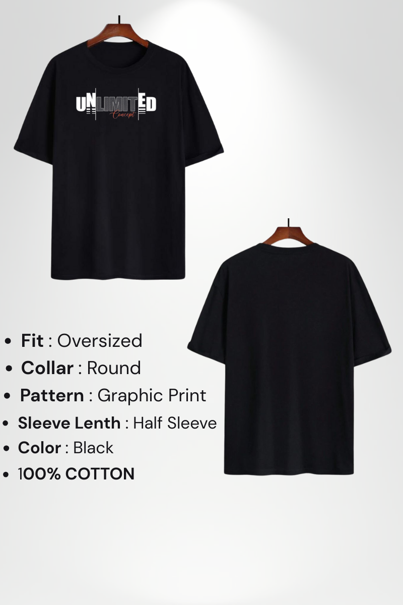 Men’s Oversized Black T-Shirt – “UNLIMITED Concept” Graphic Print | 100% Cotton Casual Tee